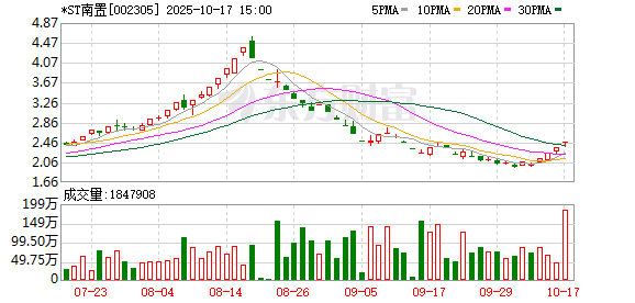 目前,*ST南置保壳压力或较大。据其2025年半年报,*ST南置归属于母公司所有者权益合计为-26.51亿元。根据《深圳证券交易所股票上市规则》,实际触及退市风险警示情形相应年度次一年度出现经审计的期末净资产为负值情况,本所决定终止其股票上市交易。