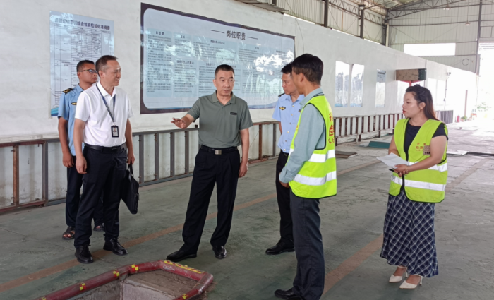 ▲黄健(左三)带队在桂林升发机动车检测有限公司检查指导