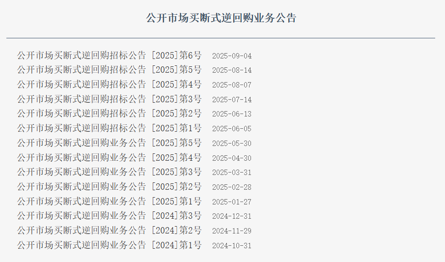 买断式逆回购工具于2024年10月正式推出,是央行主动向市场借出资金,从一级交易商购买特定债券,以此实现向市场投放流动性的操作。该工具的优势在于,能够增强1年以内的流动性跨期调节能力,进一步提升流动性管理的精细化水平。截至2025年9月初,央行已开展了多次买断式逆回购操作。