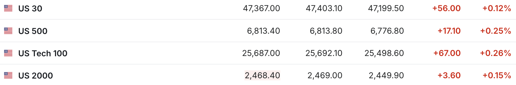 周四,美股三大股指期货小幅上涨,在经历了本周人工智能(AI)板块震荡,以及美国最高法院对总统特朗普关税政策合法性的质疑后,市场焦点重新回到企业盈利表现上。欧洲主要指数普遍下跌。