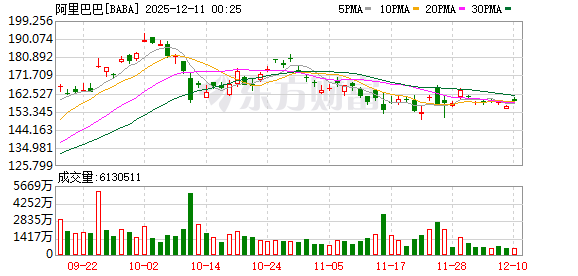 12月10日晚间,阿里巴巴美股盘前突然直线拉升,正式开盘后,维持2%左右的涨幅。