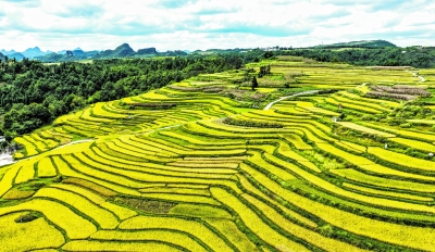 贵州省黔南布依族苗族自治州长顺县长寨街道摆塘梯田风光(9月17日摄,无人机照片)。记者 陶亮/摄